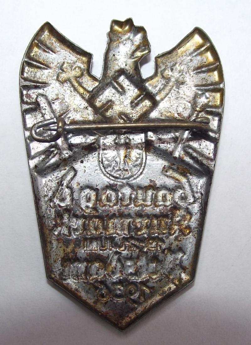 Nice design with over 80% of its period silver finish, some rust bleed mainly to the bottom area and back. The rear has its period fixing pin.