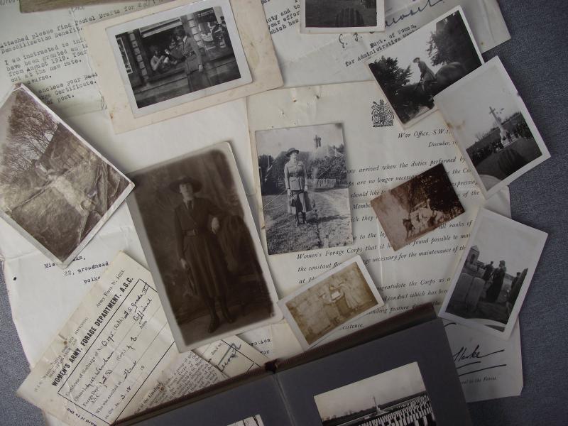 British WW1 Women's Army Forage Corps Document and Photo Group and Early War Graves Photo Album, King and Queen Visit. Abergavenny Interest.