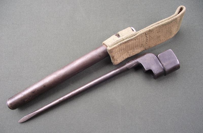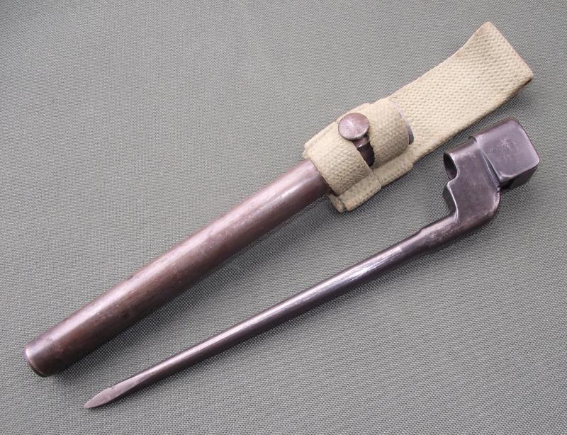 WW2 British ''Singer'' No4, MKII Bayonet with Steel Tube Scabbard and Frog.