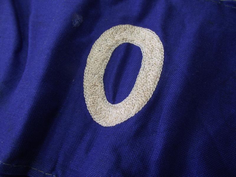 A nice armband with a chain stitched letter ''O'' to the center for a marshal of events. Two faint stamps to the rear including a 39 date. This and a small group of items i recently purchased from the son of a Welch regiment veteran who brought some items back after the war.