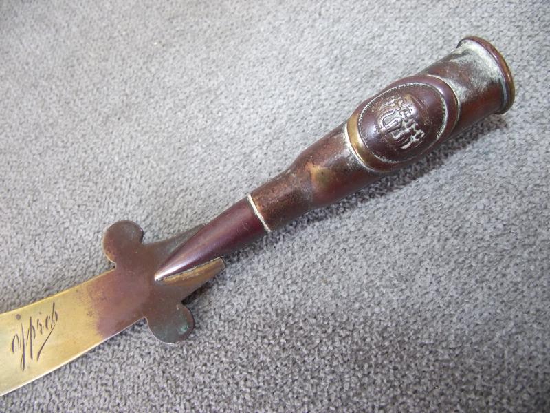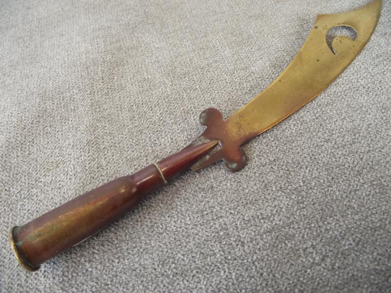 WW1 Ypres Souvenir Letter Opener with German Button.