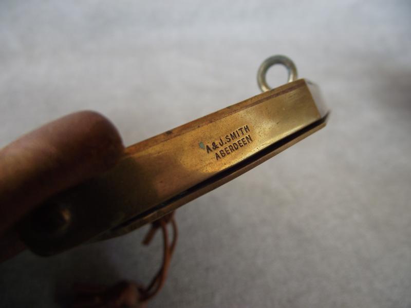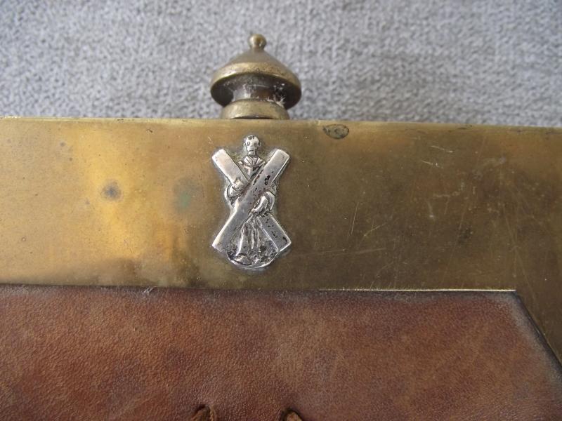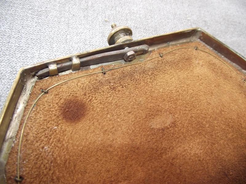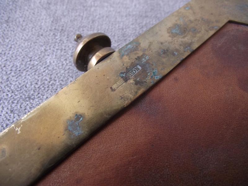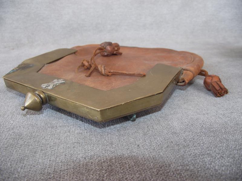 Nice leather sporran thats survived in nice condition with tight stitching and only minor staining to the leather. The brass squared cantle has some patina, not cleaned, and two sets of makers details for the Smith firm of Aberdeen. Also found the the front is a well polished St Andrews, Jimmy to friends, that might well be the central motif from a Victorian Black Watch helmet plate. Both side leather knots are present but the middle example has come adrift due to broken leather lace. Not sure on period but going by the construction i would at least date this to the early 1900's.
