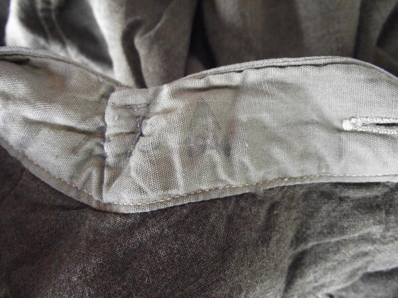 Sorry to say this light cotton wool mix example has suffered from some moth damage but would still look fine under a Battle Dress and has a nice clear 1944 date and broad arrow stamp. Sizes are approximate.