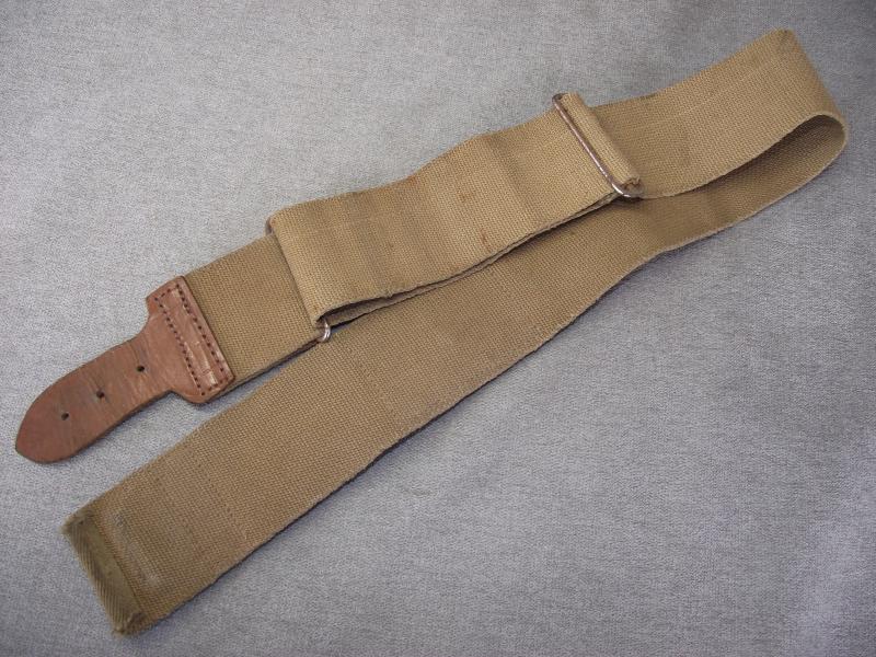 This unusual item measures around 35 inches in length with close to 7 inches extra if fully extended. Width is 2.5 inches. Webbing is clean enough with one rust stain from the metal. Both leather sections supple. Slight rust bleed to the plated metal fittings. No markings or dates im sorry to say. I presume its a naval example, no pockets in there trousers, and with the width in going to hazard a guess that it might well be part of the Naval 1919 pattern equipment. Just a guess folks ;)