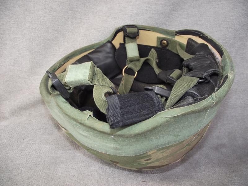 In nice used condition with its multicam cover held in place with military tape. The inside liner and chinstrap system is complete as is the helmet designation label behind the back neck padding. Label states its a size medium.