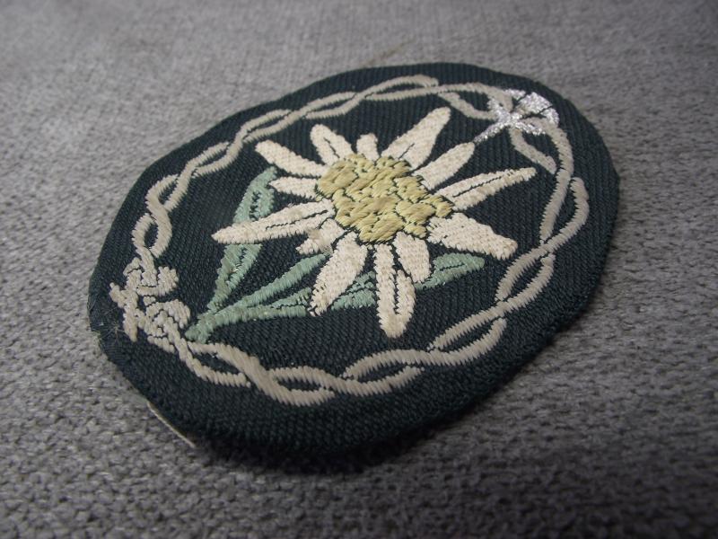 WW2 German Mountain Troopers Edelweiss Bevo Arm Badge.