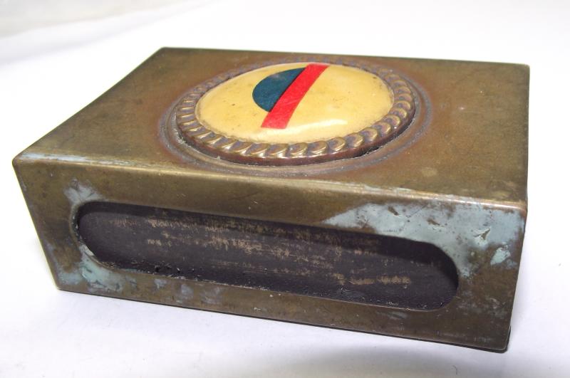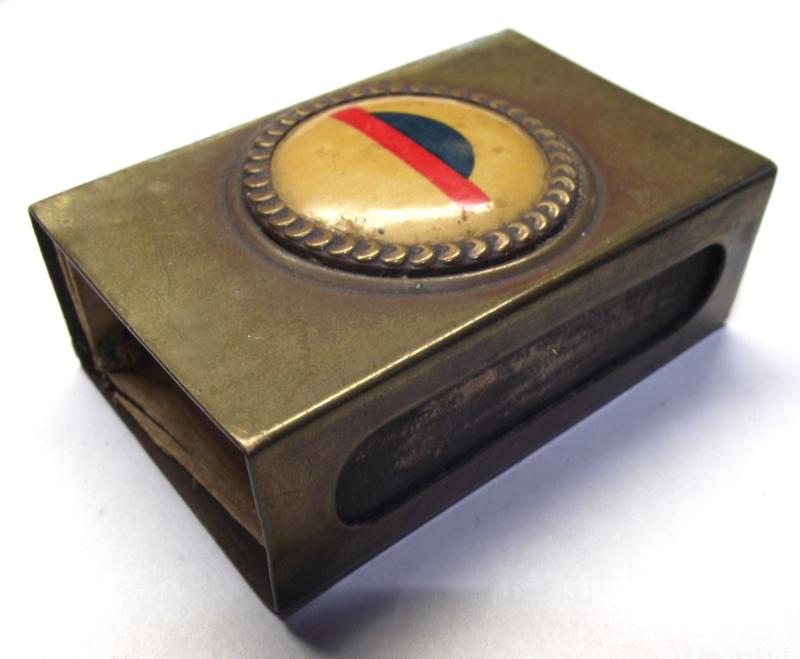 A very nice souvenir matchbox cover made from brass with a celluloid center. The closest i can come to which ''mob'' this might represent is the Canadian 16th!