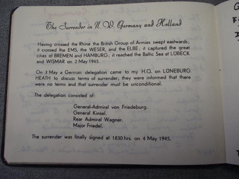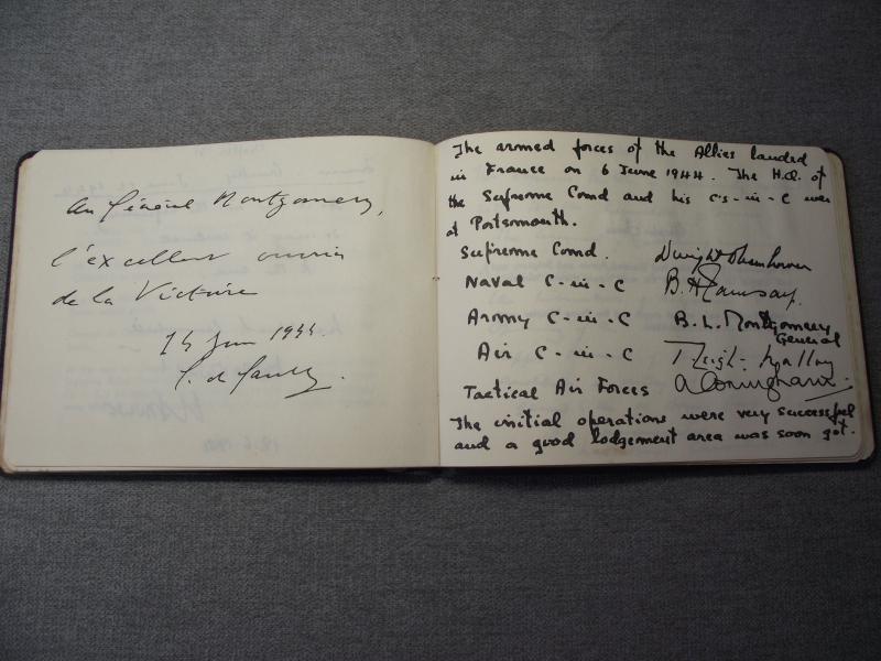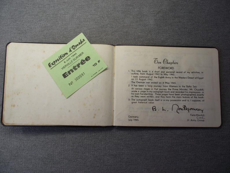 Produced in July 1945 this book has sentiments from both Churchill and Montgomery. Condition is complete and in very nice condition. Also found inside was a French ticket titled ''Exposition d'Omaha''.