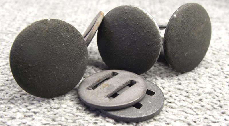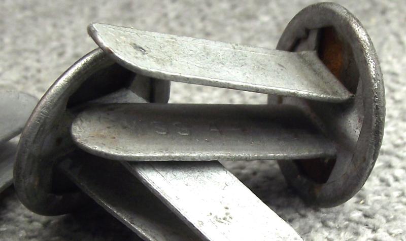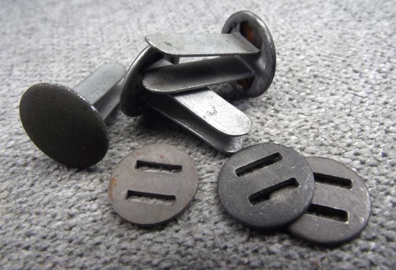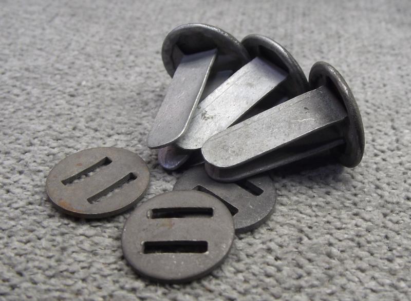 A full set of un-issued period helmet liner pins with there rear washers. All three heads have the same late war paint finish and all three are stamped to the inside pins, MSS-44.