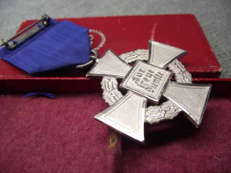 In very nice condition with the box having minor wear only. The inside medal has nearly all its frosting and burnished highlights. Medal comes with its period blue ribbon and top hanging pin.