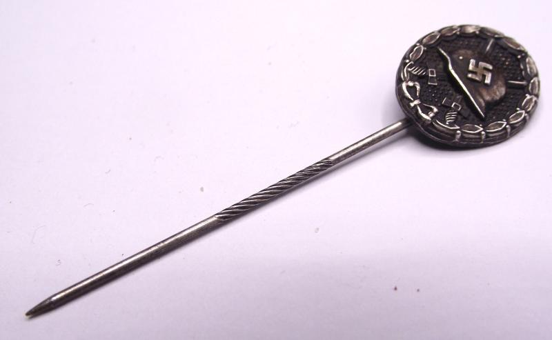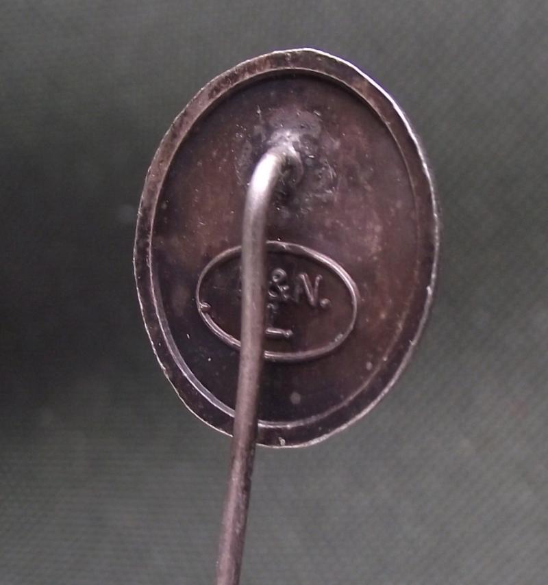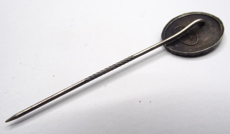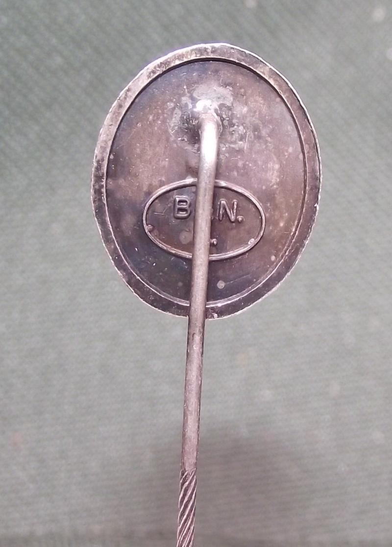 A super sharp stike 16mm Silver wound badge stick pin that has taken on a dark tone from patina. The rear has a very clear BNL makers stamp.