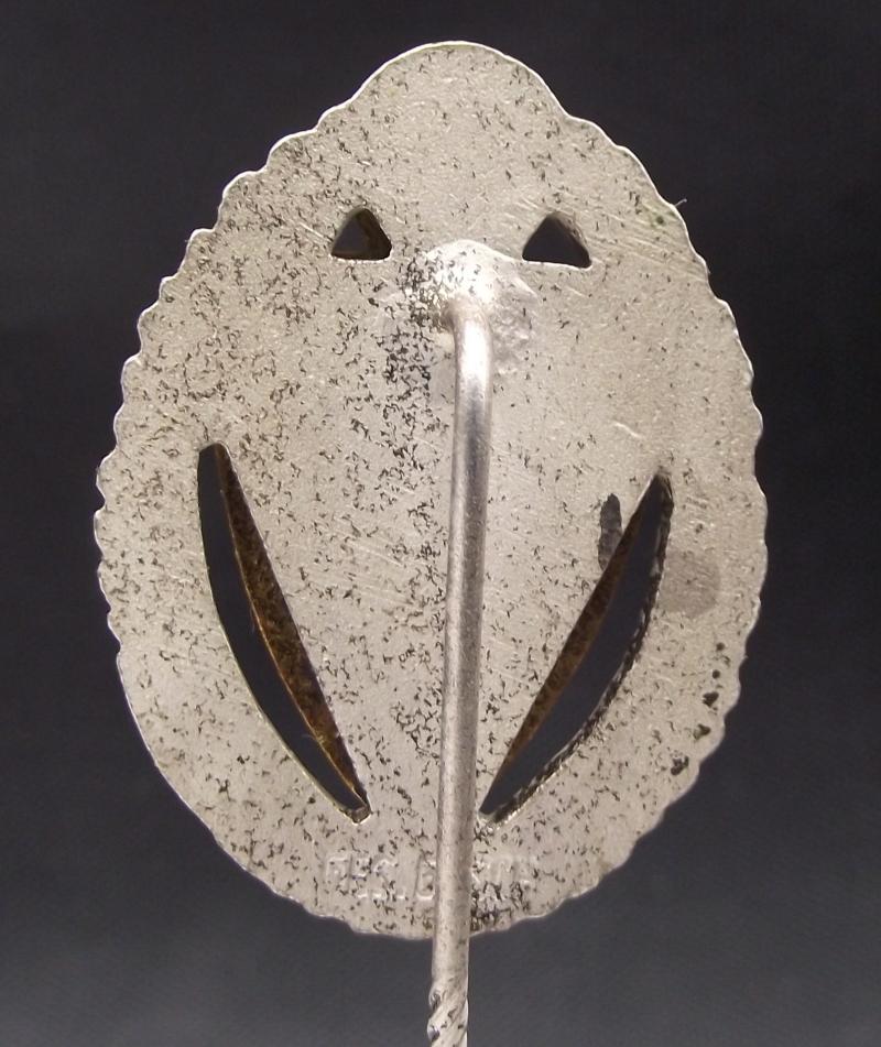 In very nice condition with clean enamel work and all its silver finish to the wreath. Stamped Ges-Gesch to the bottom rear.