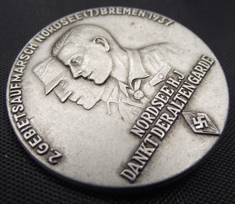Hitler Youth Tinne/ Event Badge. Aufmarsch Gebiet 2, Nordsee, 1937. Dankt Der Alten Garde.