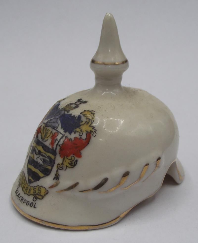 China Pickelhaube. Goss/Arcadian Style Pot Lid. Blackpool.