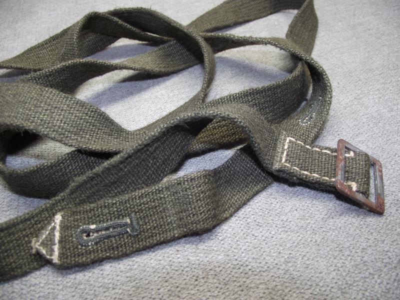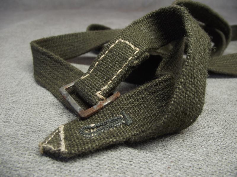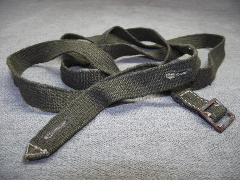 In very good, close to unissued condition with some rust bleed to the steel buckle. Strap has two eyelets. Length is around 60 inches.