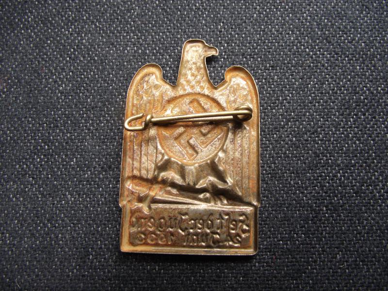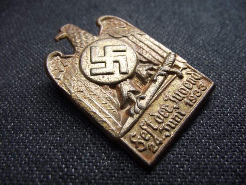 Rare HJ event badge dated 1933. Condition is good with over 80% of its gold finish intact with just a minimal amount of bleed. The rear has its period fixing pin.