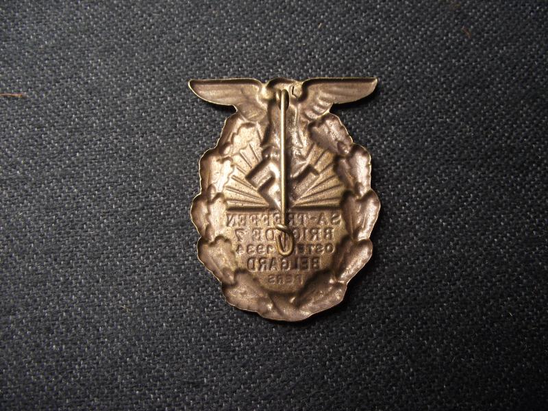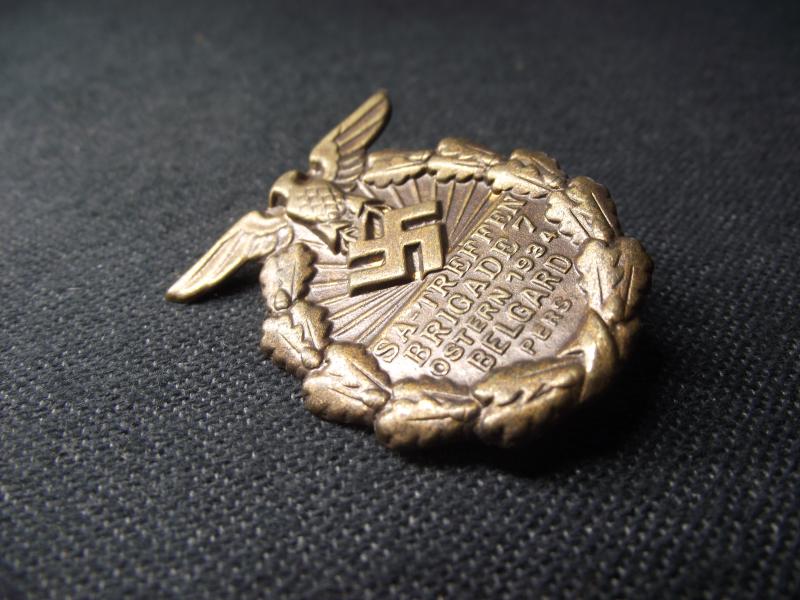 Nice early designed tinnie with a good amount of its period finish. The rear has its period fixing pin.