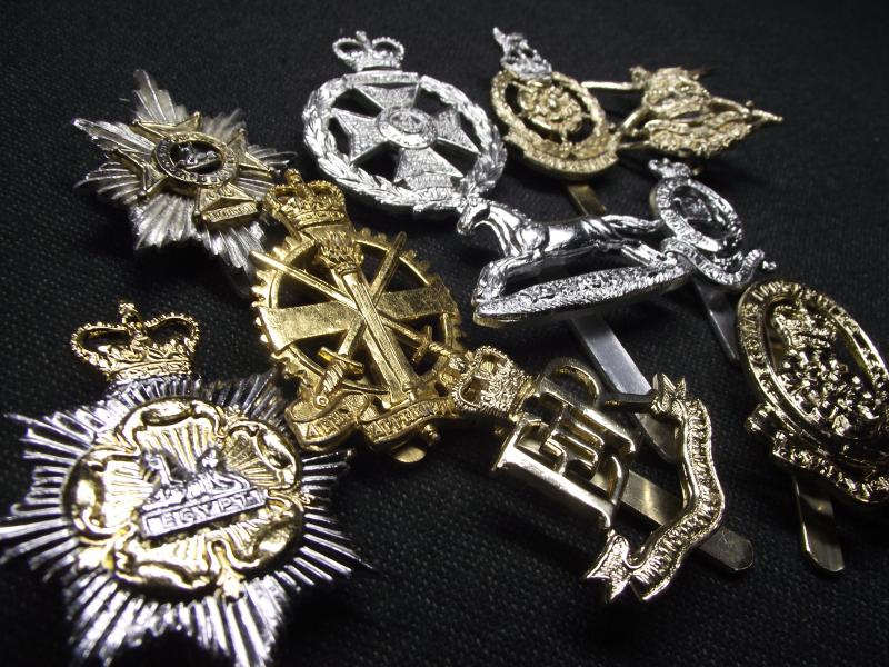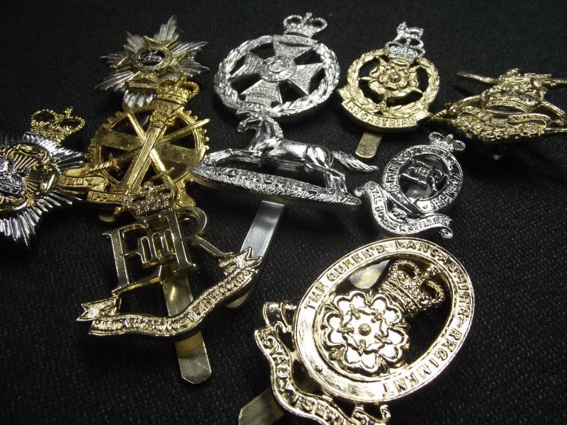 10 X British Military Anodised Regimental Cap Badges.