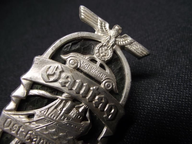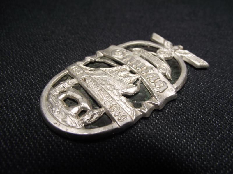 Super designed event badge struck in aluminium with a plastic type material background. Unfortunately the rear fixing pin has gone.