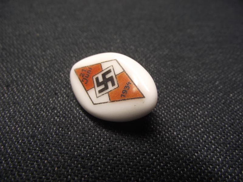 The first of the series of sport participation badges issued by the HJ, this example being manufactured in ceramic. In nice condition with clear details to the front and its period fixing pin to the rear.