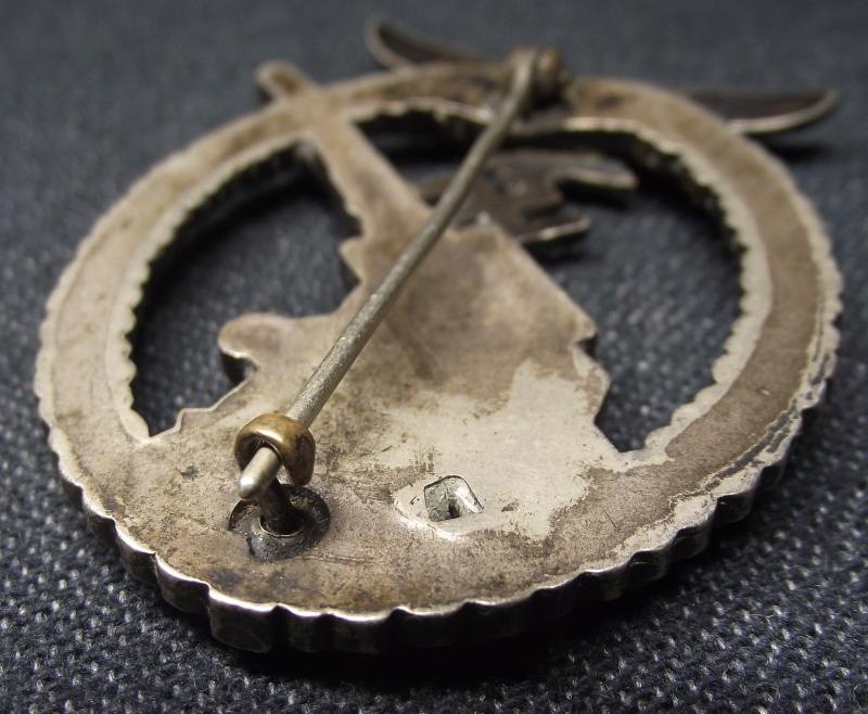 WW2 German Cased Luftwaffe Nickle Silver Ball Hinge Flak Badge..