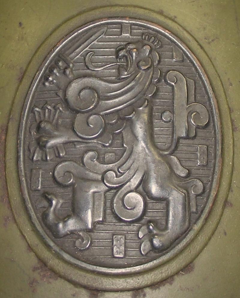 The shell has close to 90% of its pre war green finish to the outside with the front copper produced badge retaining close to 100% of its dark grey black finish, nice to find a plate that has not been cleaned to its underneath copper color. The inside im sorry to say has suffred from bad storage with most of the liner gone as is the chinstrap. Still displays well and perhaps one that could be restored with little effort.