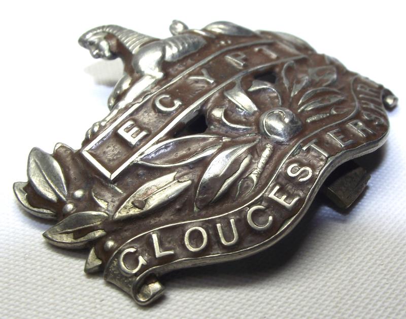 Gloucestershire Regiment Brown Painted White Metal Cap Badge.