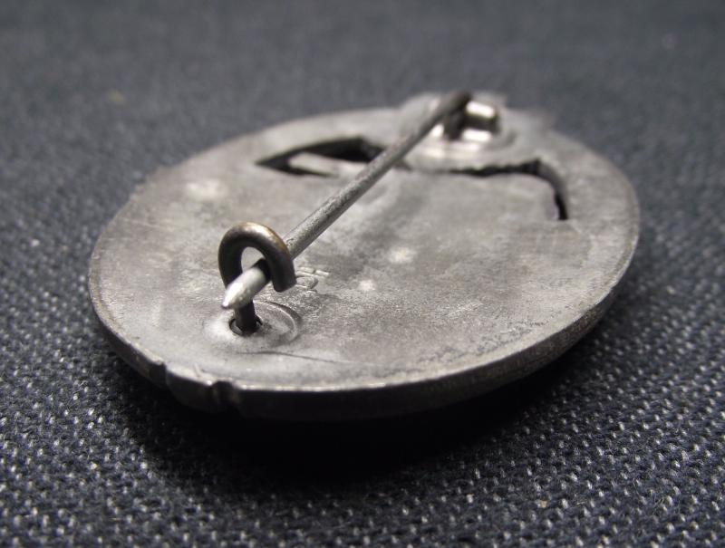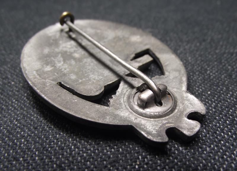 Badge has little wear to the detailed design and im going to say over 60% of its factory silver finish remaining. The rear has its period hardware and makers logo for the Aurich firm.