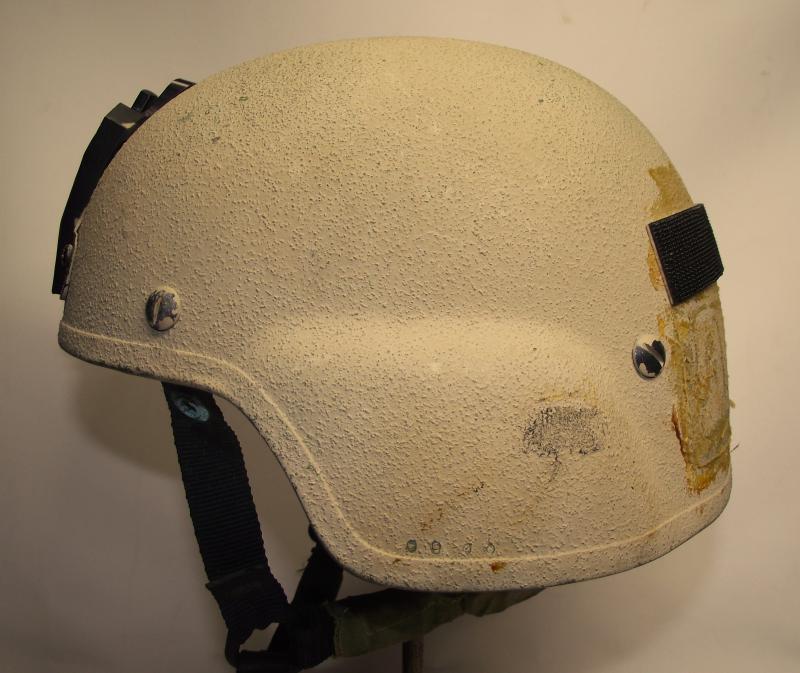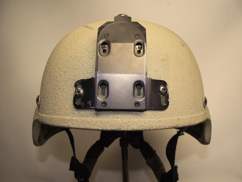 Nice TBH with tan finish added over the factory green with a night vision mount added to the front. The inside liner/chinstrap system is complete and in nice used condition. Helmet is marked ''Large'' on the inside label.