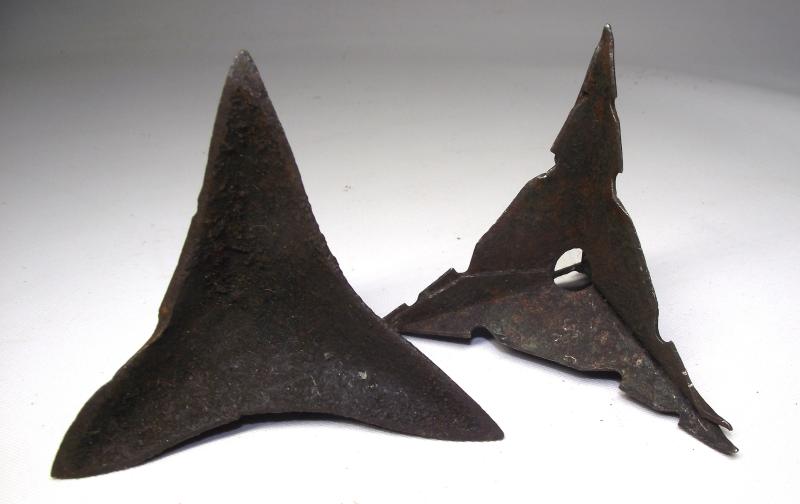 Two allied Caltrops, one being the multi piece ''Christmas tree'' type the other produced from cast steel. Both are in nice condition.