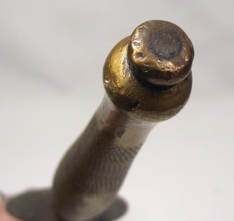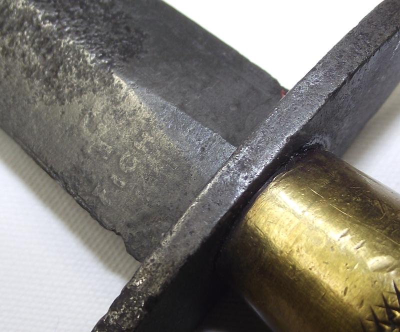 Nice relic with the remains of an etched motto to one side. I would say the hand ground blade is close to full length. The brass knurled handle has survived in much better condition still with its period peened over top pommel nut. Other than the remains of the motto no other stamps found. Please check the photos for further details.