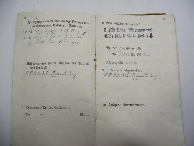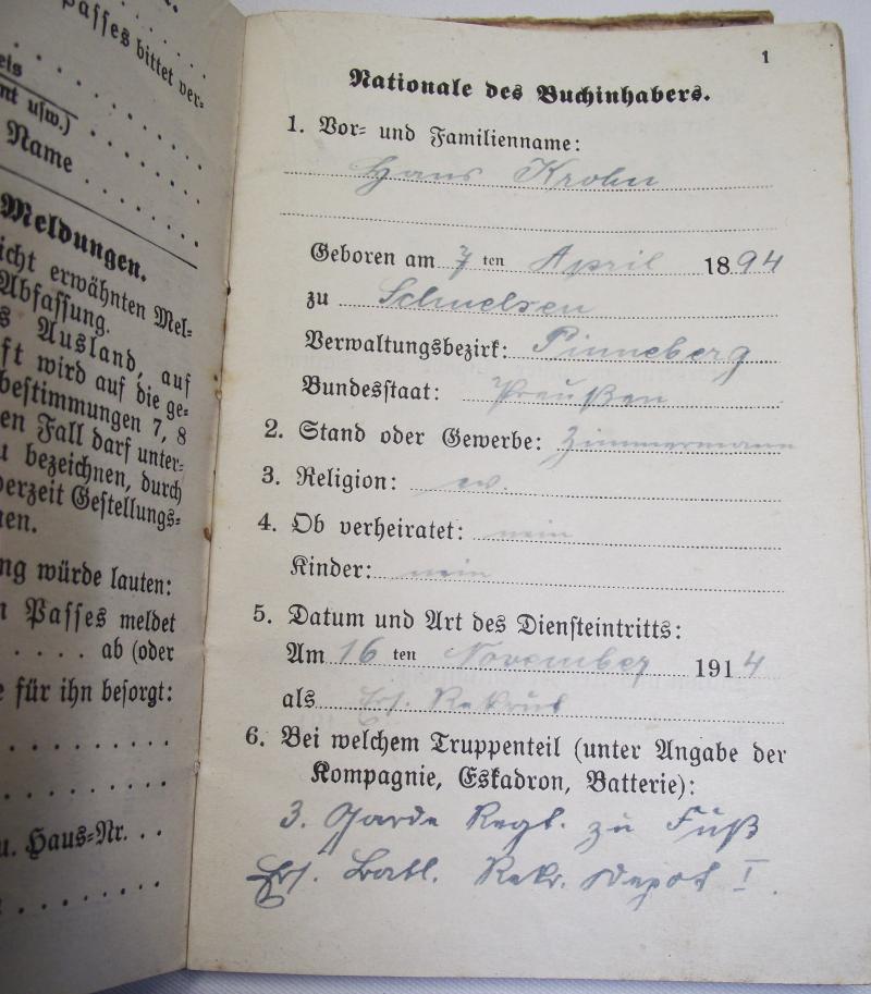 Nice complete booklet to a Prussian soldier who fought on many of the main battles during WW1 in France and Belgium. Im sure there is plenty of research possibilities when being able to translate this book.