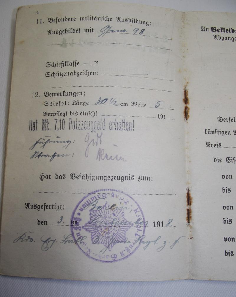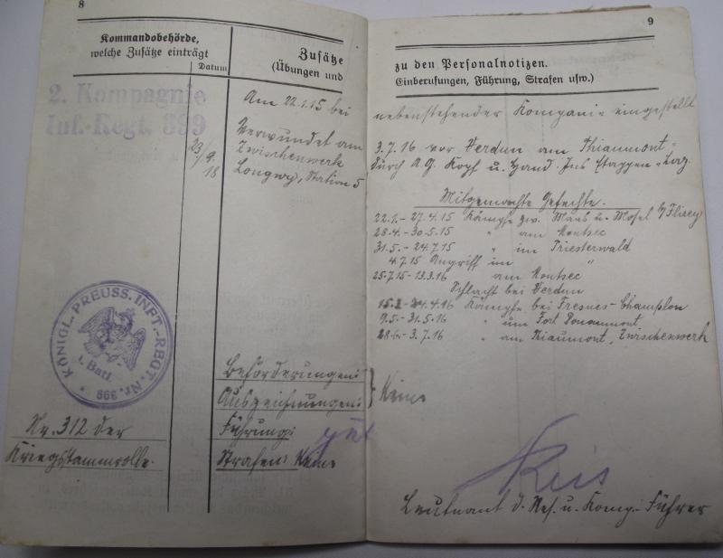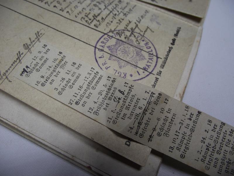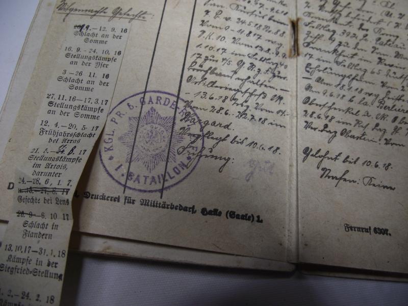 WW1 Prussian Guards Military Pass Book. Somme, Arras , Flanders.