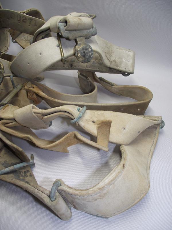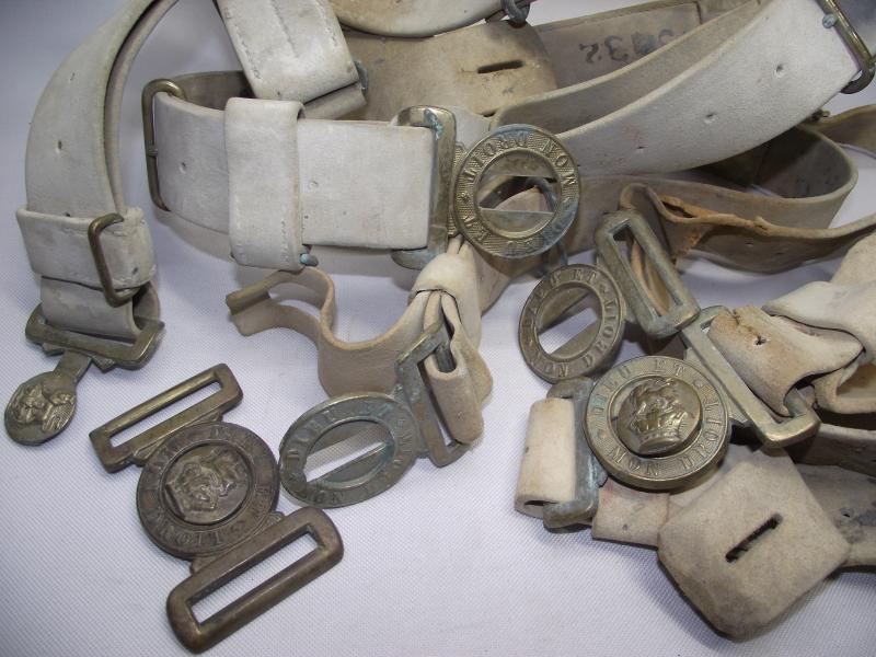 You are going to have to check the photos provided to see the details of what is on offer. Its a selection of relic 1882 belts in various conditions with five complete Victorian brass buckles. Your not going to get a complete undamaged belt thats for sure but to me the whole lot does make an interesting display piece for sure and as mentioned there are five complete buckle sets. Sorry but have no more information, story, on this lot as a guy brought them into me wanting to sell.