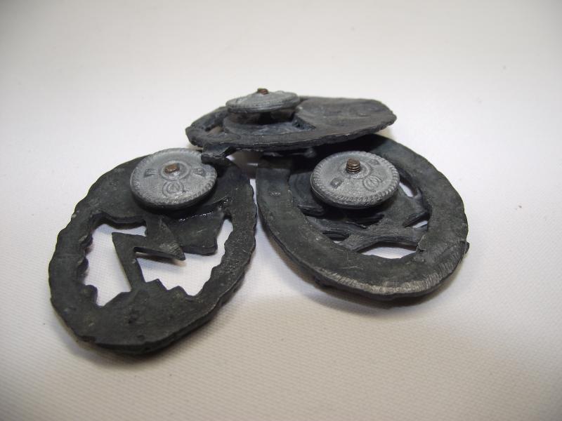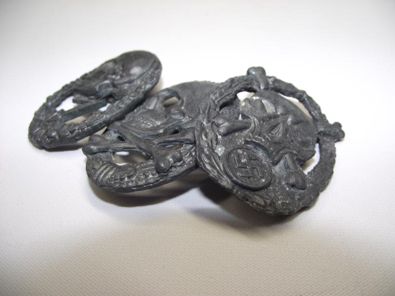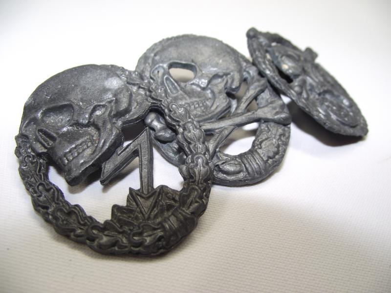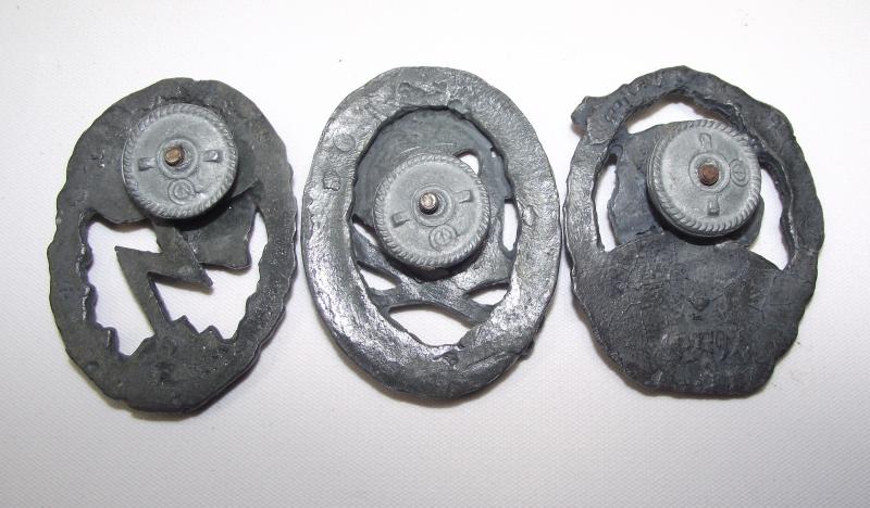 These three lead based badges look like the type seen during the late 1970's worn by Bikers etc. Please check photos provided for further details.